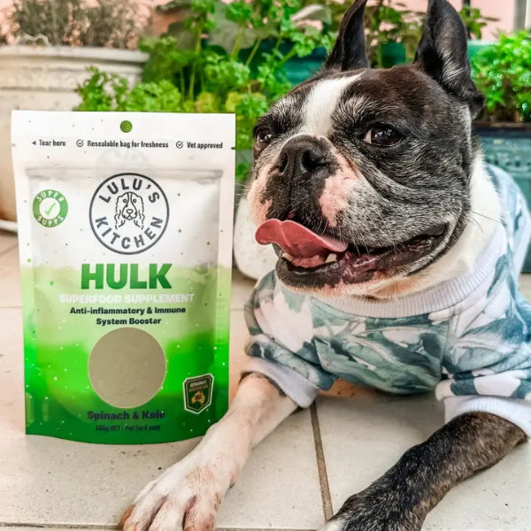 Whether your dog is a playful pup or a wise senior, "HULK" is the green-powered boost they need to thrive.