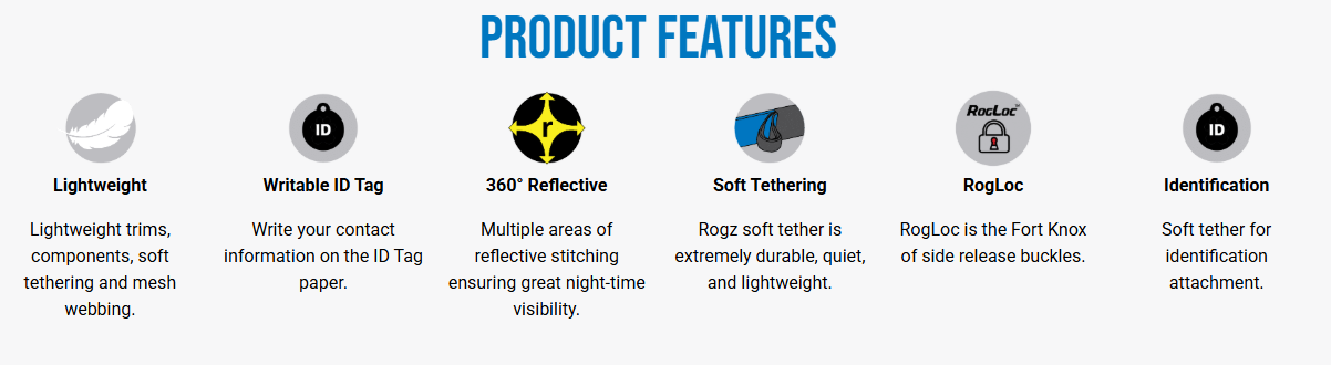 The soft tether allows for easy lead attachment, while reflective stitching enhances visibility during low-light walks. Featuring the secure RogLoc buckle, this collar stays safely fastened and prevents accidental release.